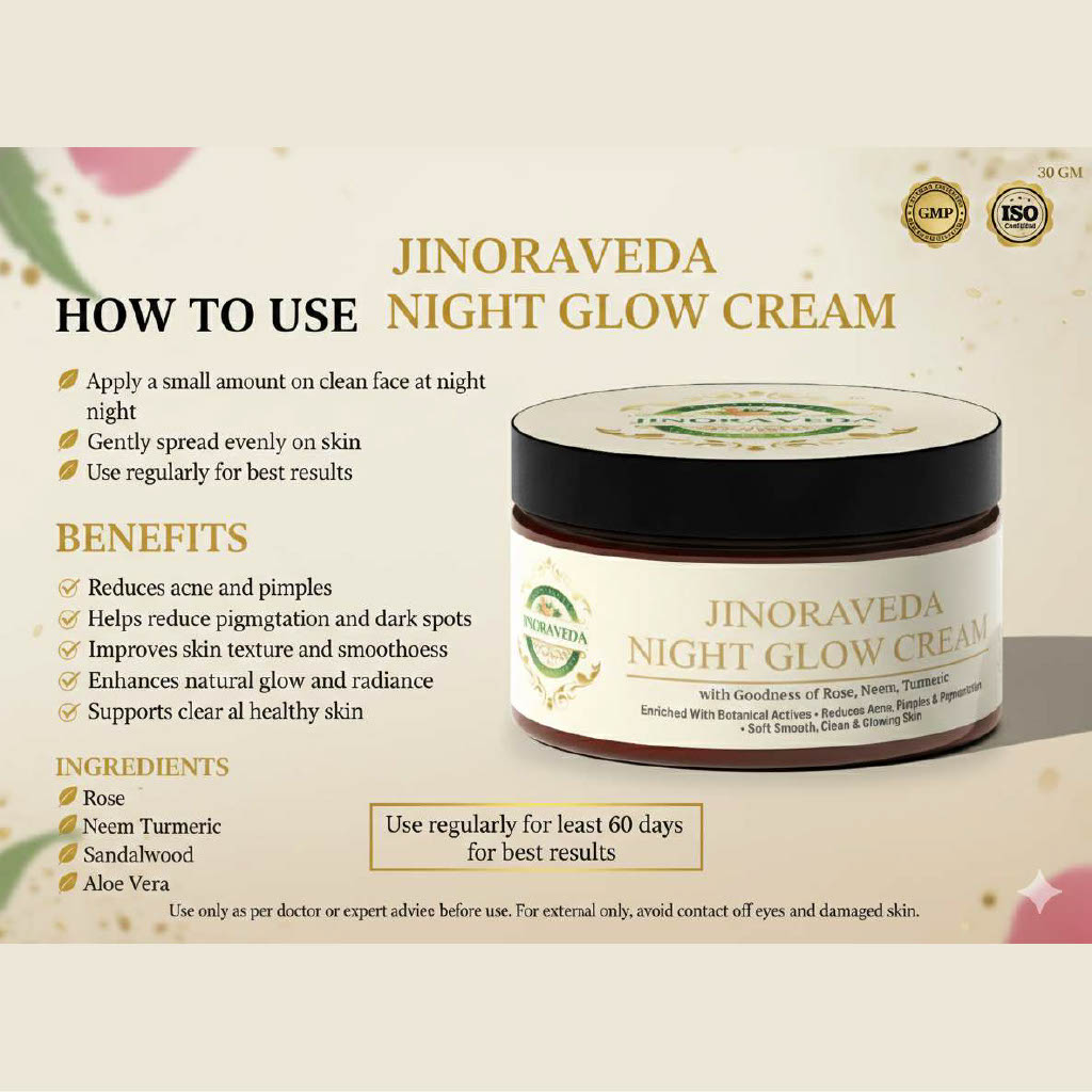 JINORAVEDA Night Glow Cream – Skin Repair & Brightening Cream (30g)