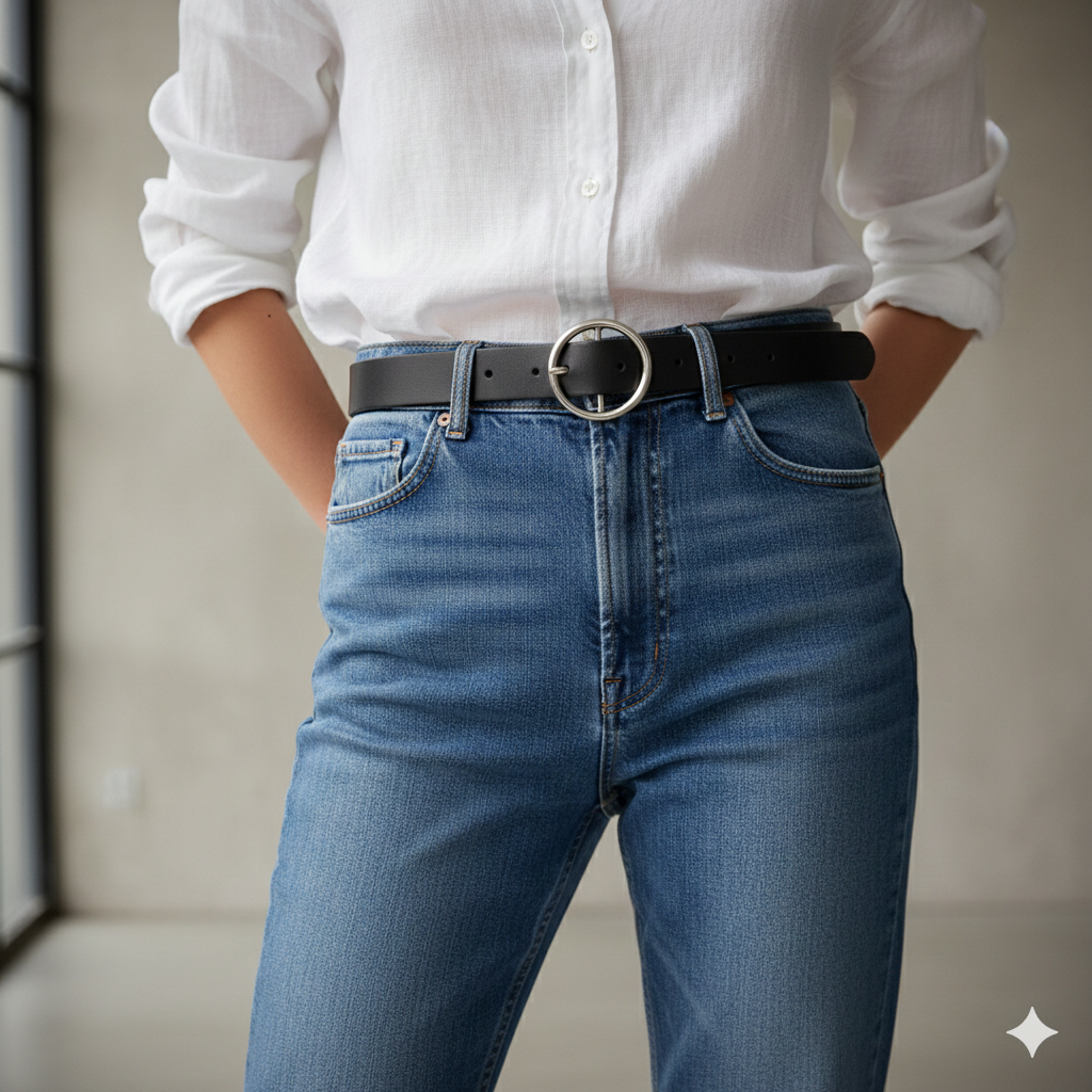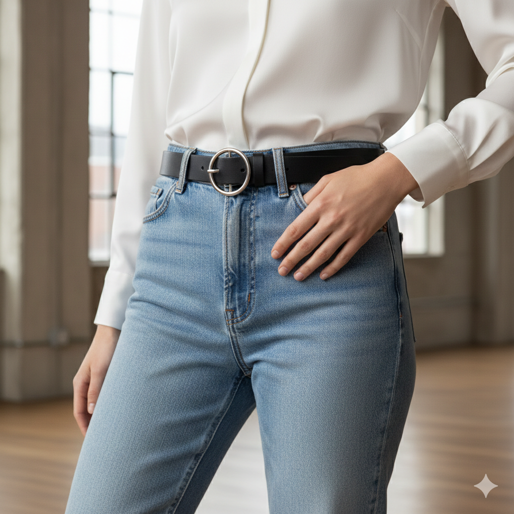JINORA Women’s Slim Belt is designed to add a touch of elegance and style to your outfit. Featuring a sleek black finish with a modern round metal buckle, this belt enhances both casual and formal looks effortlessly.