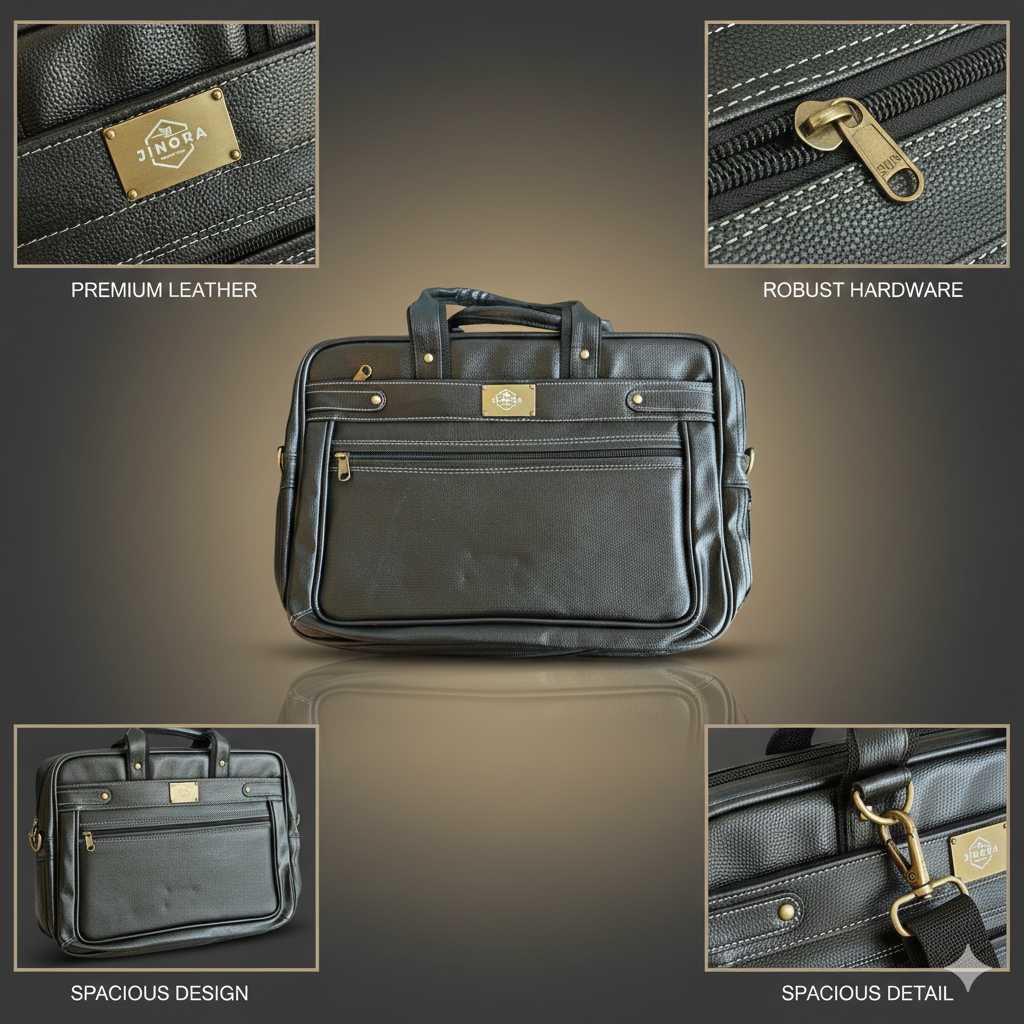 JINORA Black Monarch Office Bag is the ultimate symbol of power, elegance, and executive excellence. Crafted in a premium black textured leather finish with refined golden accents, this bag is designed for those who lead, not follow.